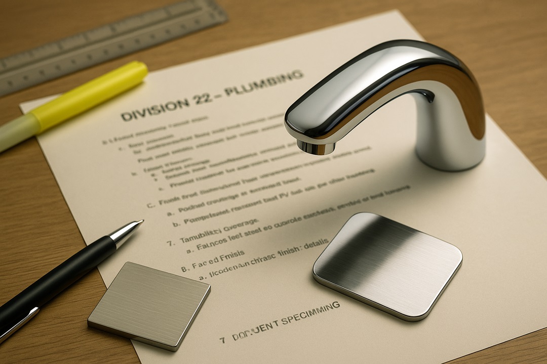 Architectural specifications should coordinate faucet finishes with the owner’s cleaning protocol:
